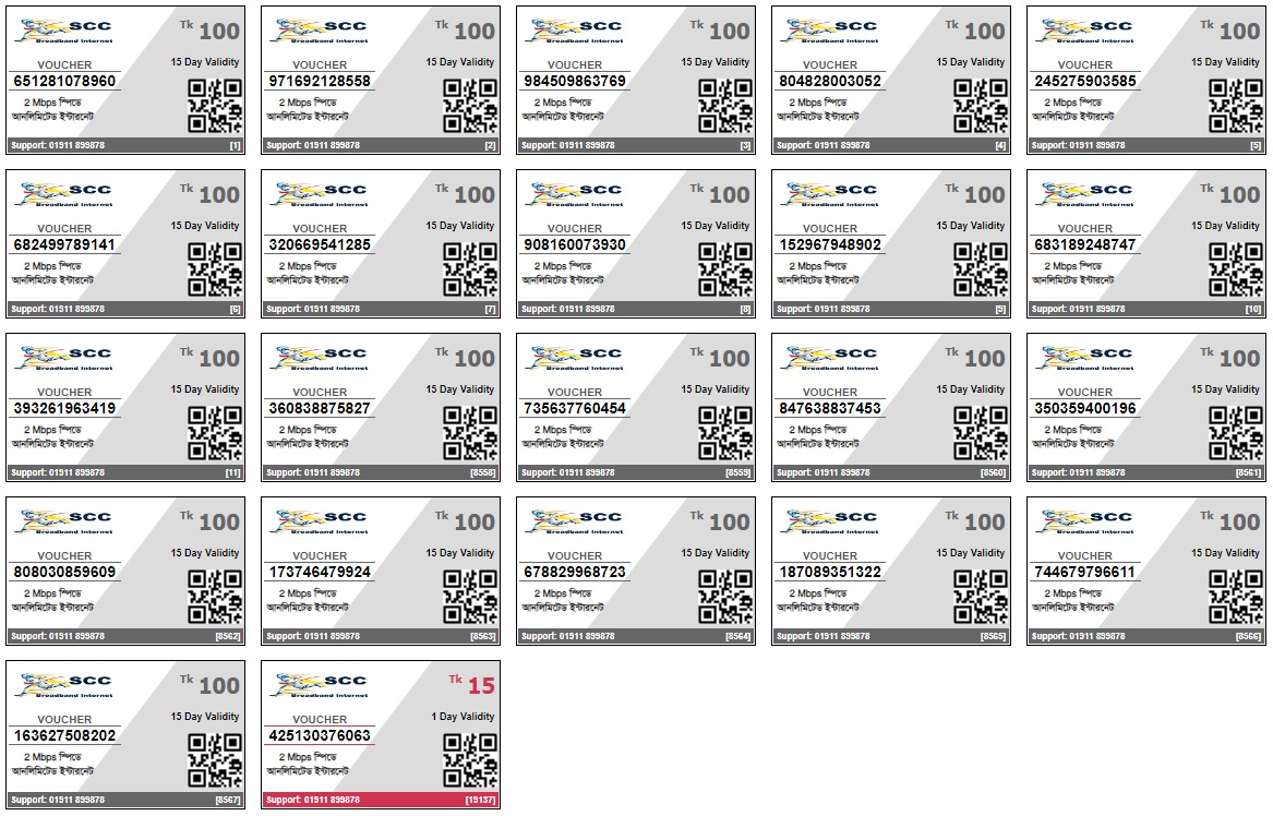 Using this feature you can generate scratch cards for your PPPoE, Hotspot users. Your customer will be able to recharge automatically using the PIN number of this card. There are also facility to print this card with the logo of your own company.