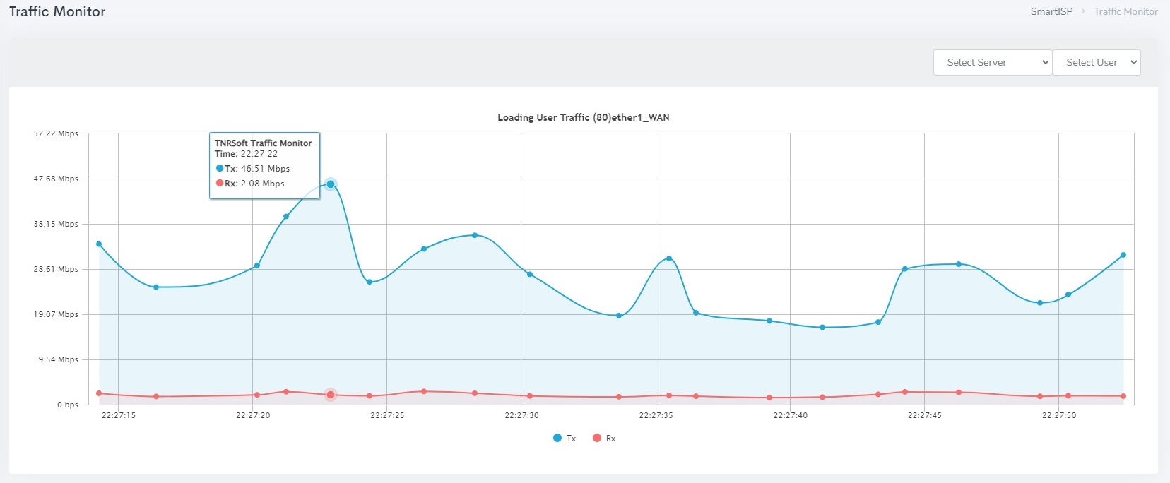 Using this feature you can easily see how much data is being passed through any port of your Mikrotik. Using this traffic monitor you can also see your PPPoE user based realtime traffic.