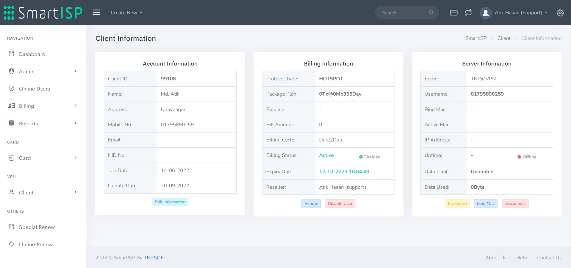If Mikrotik disconnects from Smart ISP?, there will be no problem with the end user’s network connection. Because in the API system, Mikrotik Secret manages the client’s ID. There is no reliance on Smart ISP Software.