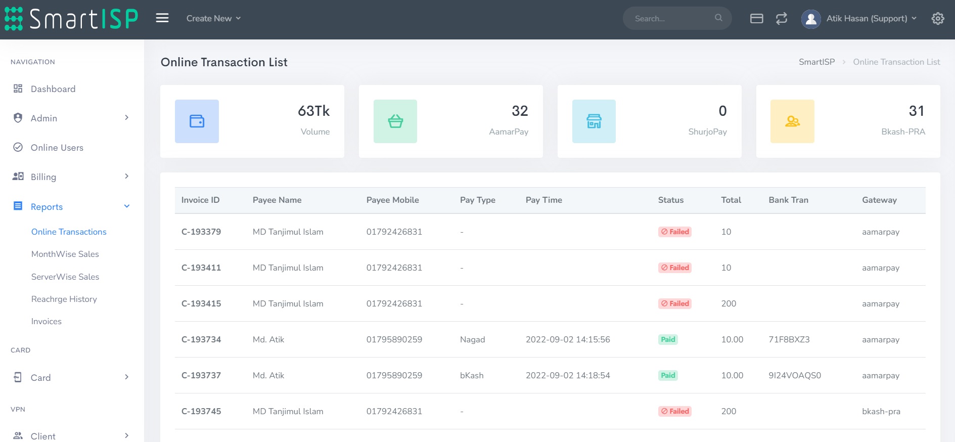 Using this feature you will get the report of your company's invoice. In the report you can use different types of filters such as you can see how many invoices there are from a certain time to a certain time, zone based invoices, user based invoices, payment method based invoices, server based invoices etc. There is also the option to print these reports.